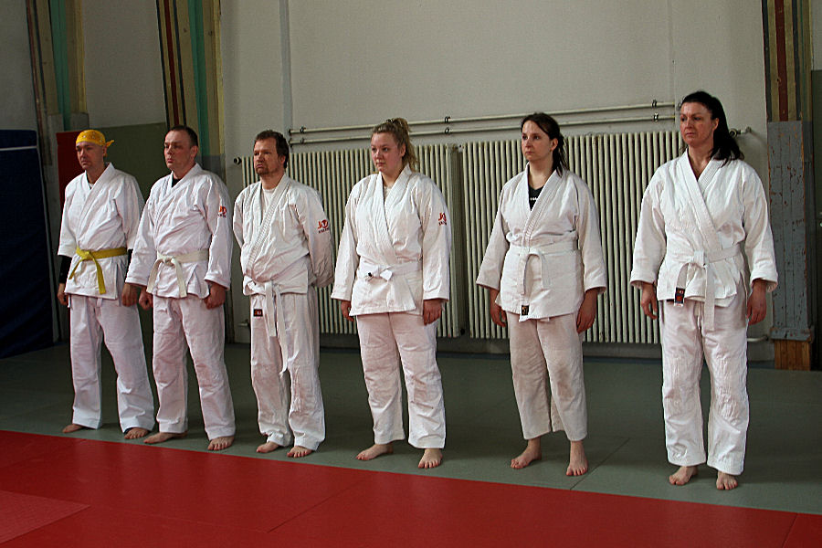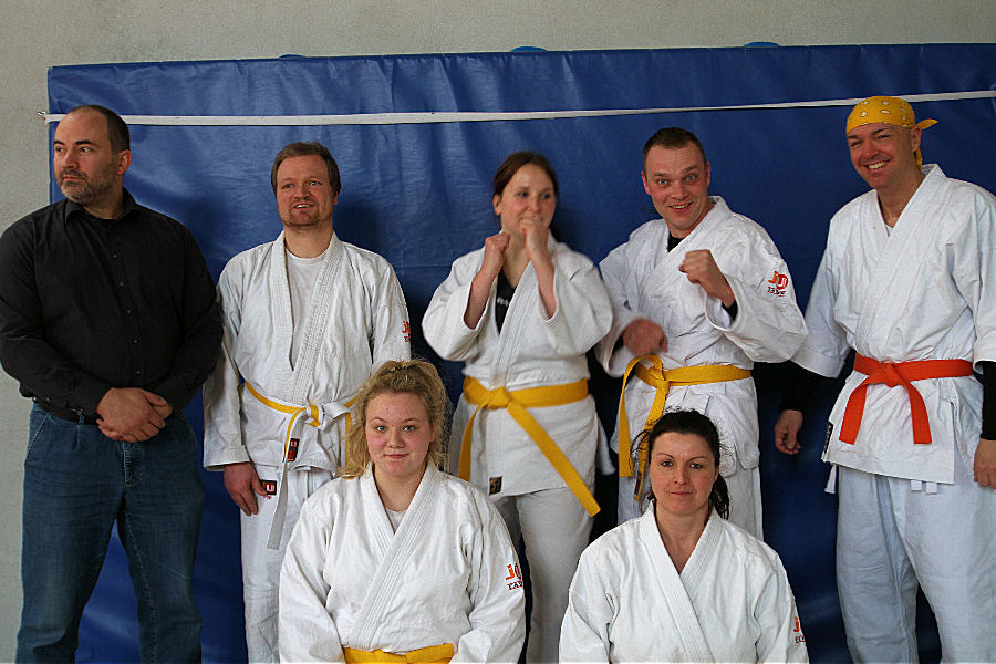 Andre, Nancy, Anja, Martina, Thomas und Toni stellten sich einer Prüfung im Ju-Jutsu.