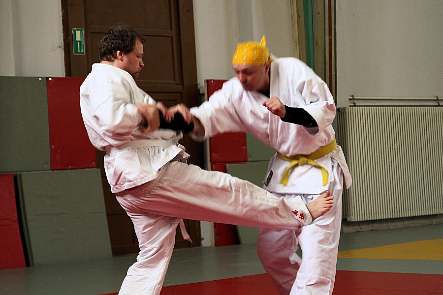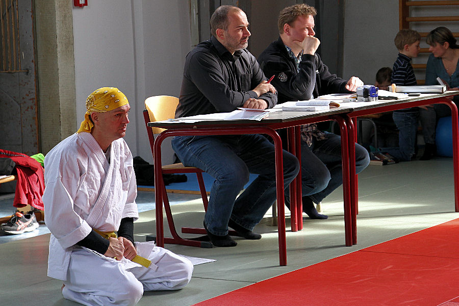 Der Termin war eigentlich überfällig. Toni hatte seinen gelben Gürtel mal im Jahr 2011 gemacht und ist bereits seit Jahren Trainer im Verein. Er kommt eigentlich vom Kickboxen und hinkt seinem Potenzial im Bereich der Gürtel um Welten hinterher. Aber auch die anderen Prüflinge trainieren teilweise schon über 2 Jahre im Verein. Das Prüfungstraining war halt nie so richtig der Schwerpunkt. Insofern hatten wir uns im Herbst vergangenen Jahres mal dieses Ziel gesetzt.